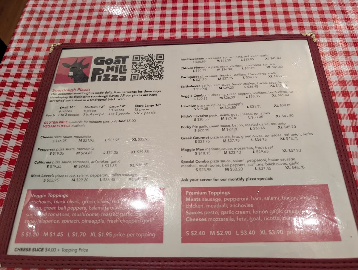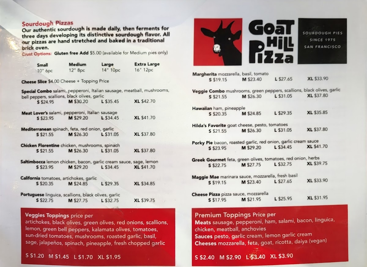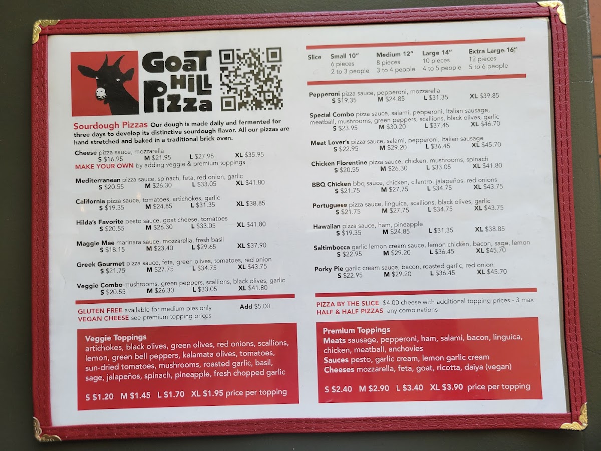 Goat Hill Pizza Menu
