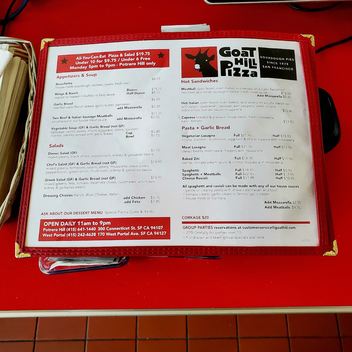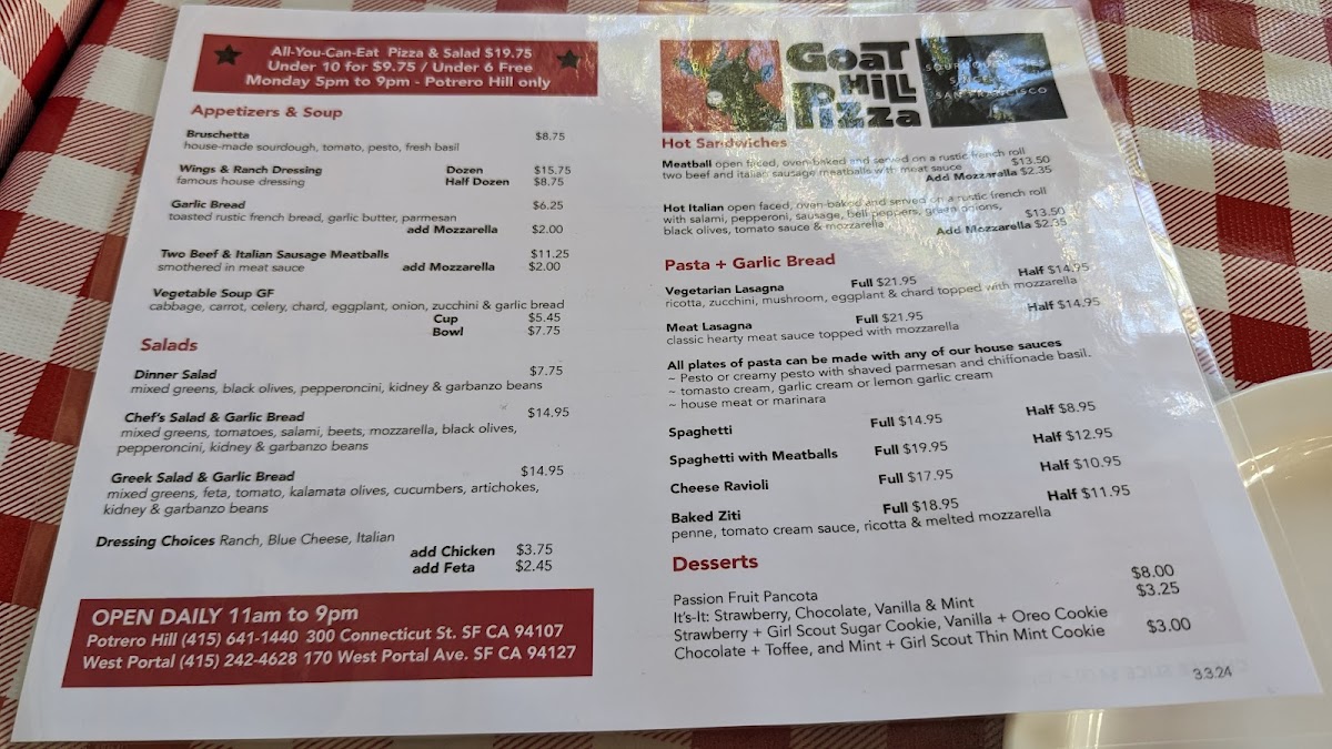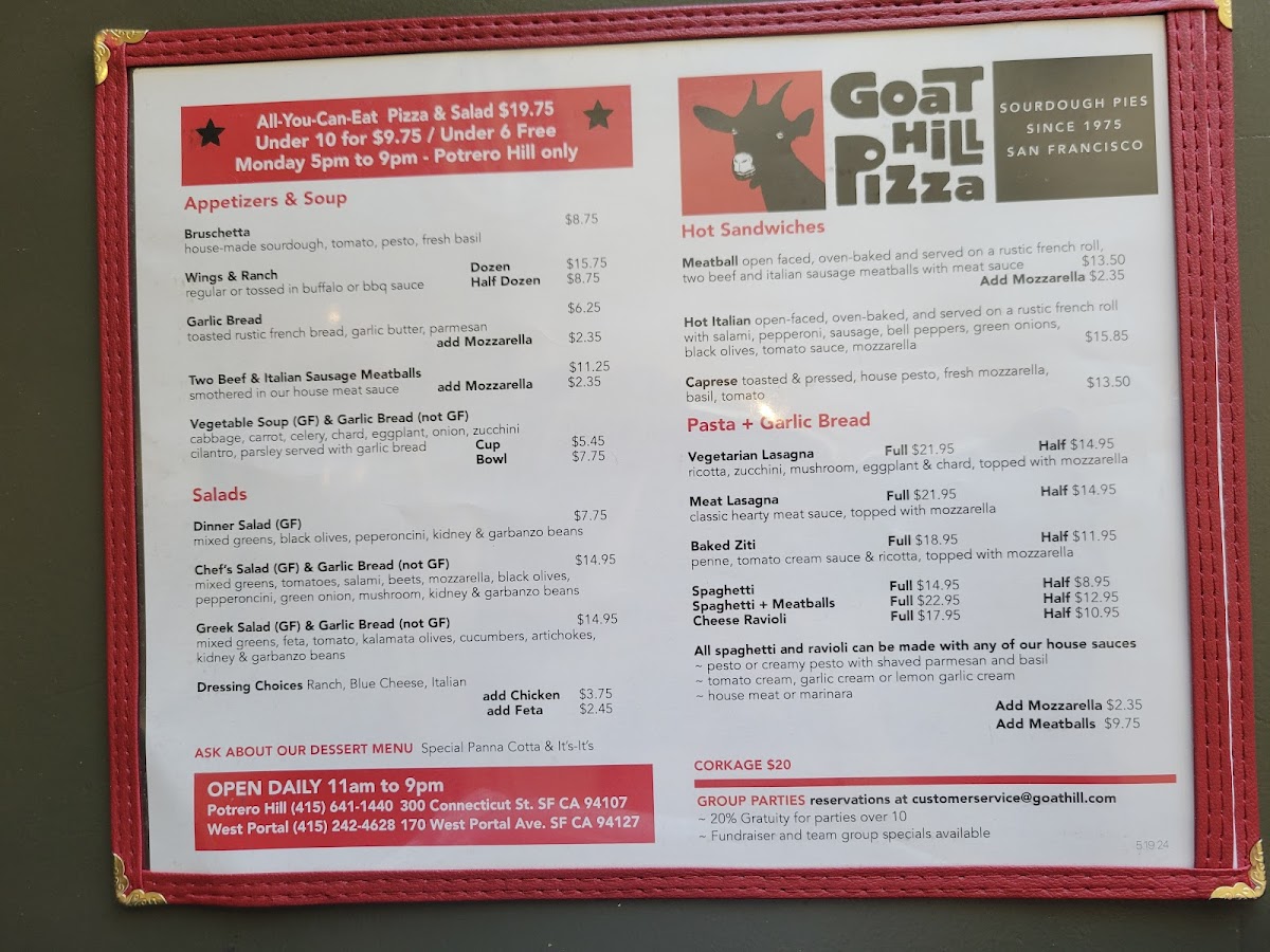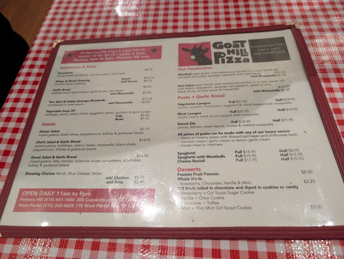 Goat Hill Pizza Menu